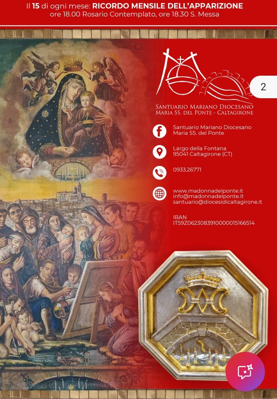 Maria SS. del Ponte è uno dei titoli mariani più amati a Caltagirone, da secoli oggetto di grande devozione. È legato all’apparizione della Vergine col Bambino che la tradizione locale dice essere avvenuta il 15 agosto 1572 nel rione del Ponte, presso una piccola fonte appena fuori dalle mura della città.